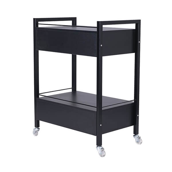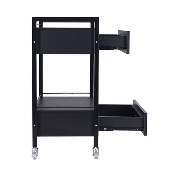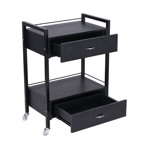 The Bella 2 Drawer Beauty Trolley in black features two (2) large drawers with ample storage space for all your beauty products and equipment. Also features back supportive pins, side guards and professional clear roller wheels for easy mobility around the salon.
