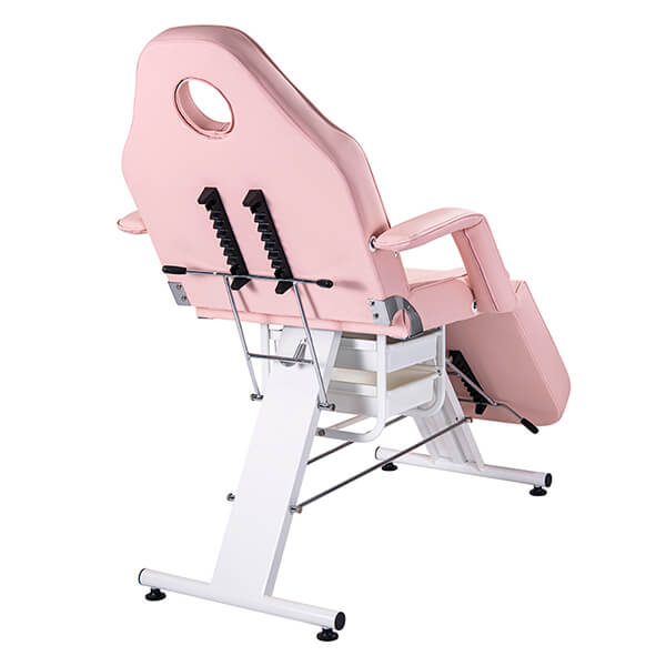 The bed smoothly converts from an adjustable chair into a fully flat treatment bed by manually adjusting the backrest and leg sections, making it suitable for a wide range of beauty and aesthetic treatments. It features two (2) convenient slide-out trays for tools and accessories, along with a sturdy steel base supported by locking pins and four (4) adjustable rubber feet for excellent stability.