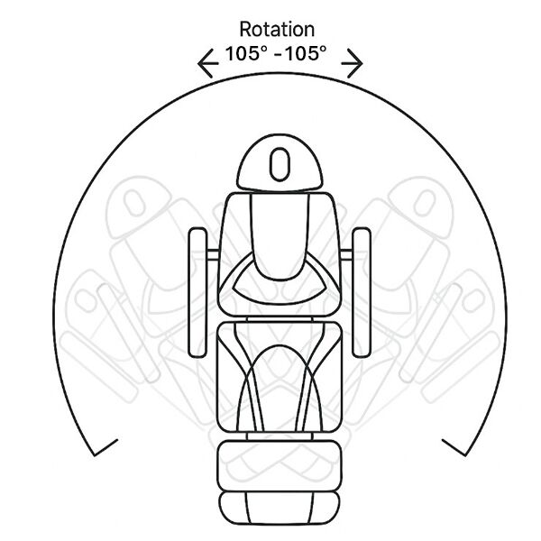 210 degree left and right rotation (measured from the centre of the chair – 105 degrees each way, chair can lock in any position)