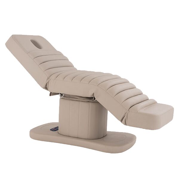 Upholstered in anti-microbial medical-grade vinyl and layered with luxurious memory foam, the bed ensures both hygiene and superior client comfort. It features a built-in face hole and a wide, ergonomically shaped head pillow to support extended treatments in prone or reclined positions.