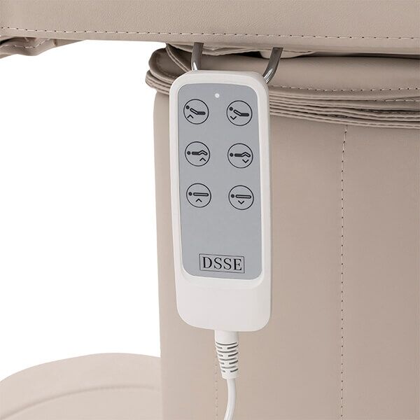 Three ultra-quiet electric motors allow seamless, precise adjustment of height, backrest, and leg positioning, controlled via a sleek hand-held remote. An optional foot control is available for practitioners seeking effortless, hands-free operation during treatments.