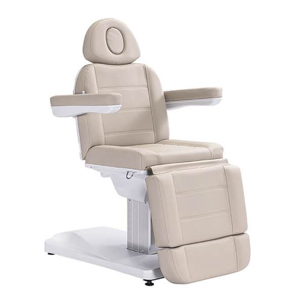 Equipped with three electric motors and controlled via a handheld remote (with optional foot control), the bed allows smooth, effortless adjustment of the backrest, height, and leg sections. Its sleek design and functional features make it an elegant and practical centerpiece for any modern beauty treatment room.
