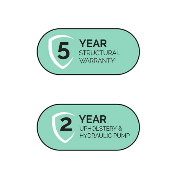 Padded armrests and extended calf rest for enhanced client comfort