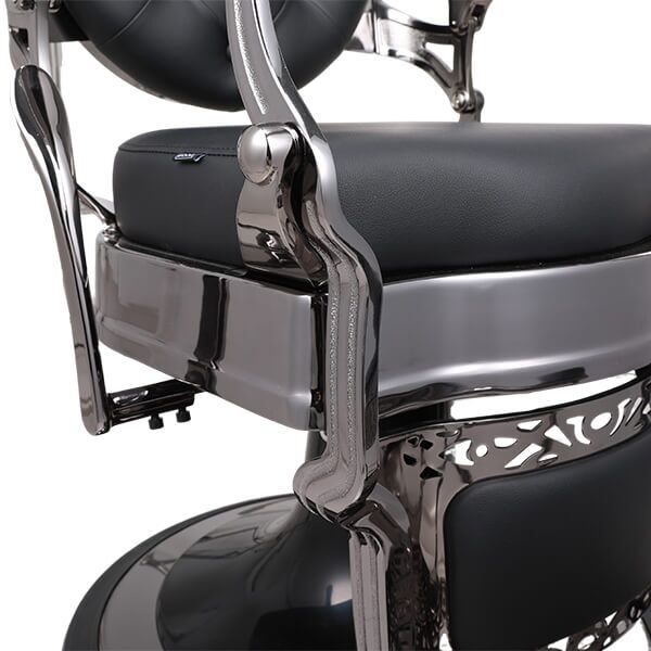 The Onyx Barber Chair is clean, sharp, and purpose-built for modern barbershops. Finished in a deep black chrome frame, it delivers a bold, reflective edge that sets it apart from traditional matte or brushed finishes.