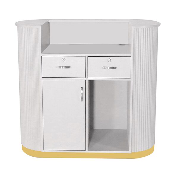 A luxury addition to any salon space, the Pallas 1200 Salon Reception Desk is one of our most popular reception designs, created to make a strong and elegant first impression. Featuring clean, minimal lines and a beautiful gold trim at the base, it brings refined sophistication to modern salon and clinic environments.