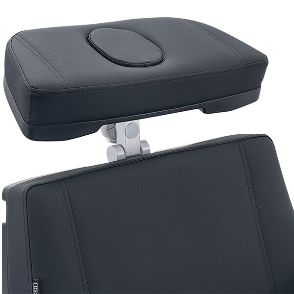 The flat, reversible armrests provide maximum comfort and adaptability, while the adjustable headrest features a removable cushion that reveals a facial hole, now 20% larger to improve client comfort during facial services.