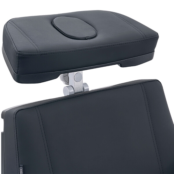 The flat, reversible padded armrests provide maximum comfort and adaptability, while the adjustable headrest features a removable cushion that reveals a facial hole, now 20% larger to improve client comfort during facial services.