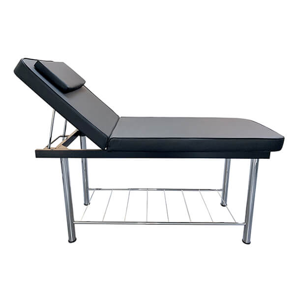 Promote ultimate comfort in your professional beauty salon with the Serenity Massage Table. Upholstered in premium-grade PU vinyl and cushioned with memory foam, it ensures exceptional comfort and long-lasting durability. Designed for both practicality and functionality, the table features a spacious, easily accessible shelf perfect for storing towels and linens. The multi-positional backrest is effortlessly adjusted using a friction bar mechanism, allowing for precise positioning. Additional features include a face hole with an insert pillow and sleek, stylish chrome legs, all making the Serenity Massage Table a sophisticated and reliable choice for any treatment room.
