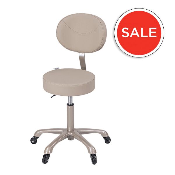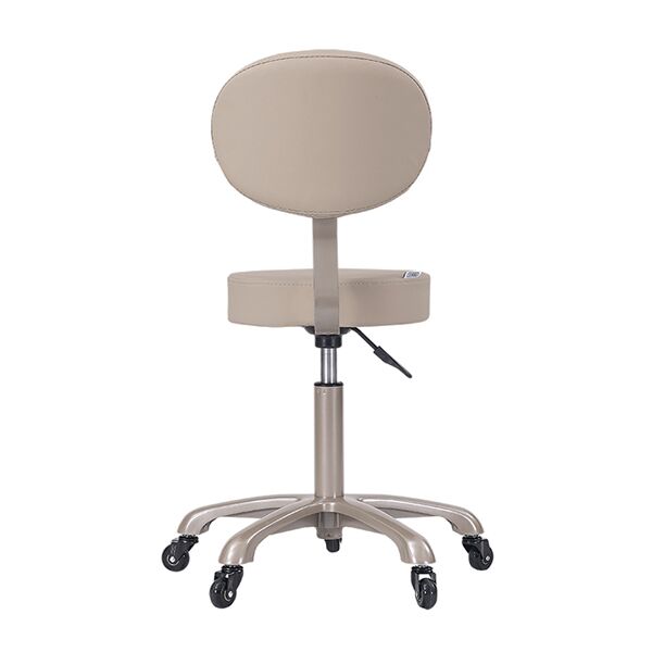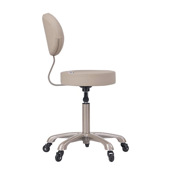 The Cora Stool with back support is designed for lasting comfort and professional use. Its anatomically padded seat is upholstered in anti-microbial medical grade vinyl and finished with memory foam for extra comfort during long hours of sitting. The curved backrest provides essential support, helping to maintain correct posture, while the gas-lift adjustment ensures the stool can be easily set to the ideal working height. A durable beige five-star base with matching gas lift adds stability and style, and the stool is fitted with 50mm professional roller wheels for effortless movement around the workspace. Perfectly balancing functionality, comfort and design, the Cora Stool is a reliable choice for any salon or clinic.